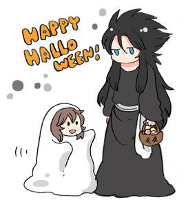 ハロウィン絵ちゃんと描けなそうなのでらくがきに色塗りました